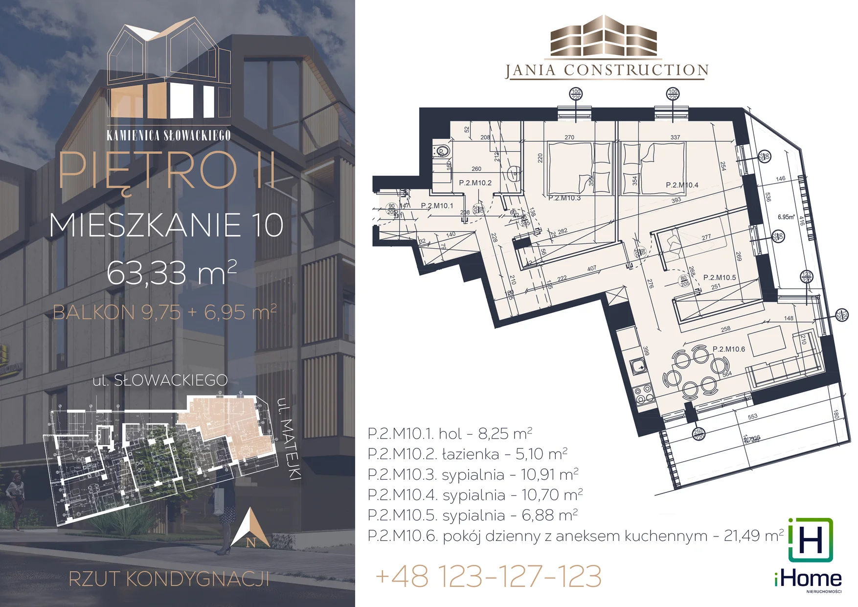 Nowoczesny pięciokondygnacyjny budynek mieszkalny wielorodzinny w ścisłym centrum Myślenic zlokalizowany przy skrzyżowaniu ulic Słowackiego i Matejki. Budynek zlokalizowany zaledwie 200 metrów od Myślenickiego Rynku. Do dyspozycji mieszkańców deweloper zapewnił miejsca w hali garażowej, wraz z platformami samochodowymi. Ofertę sprzedaży inwestycji uzupełnią lokale handlowo usługowe w parterze. W Kamienicy Słowackiego zostały zaprojektowane zróżnicowane metraże mieszkań od 27 do 67 m2. Inwestycja zostanie oddana do użytkowania w III kwartale 2025.